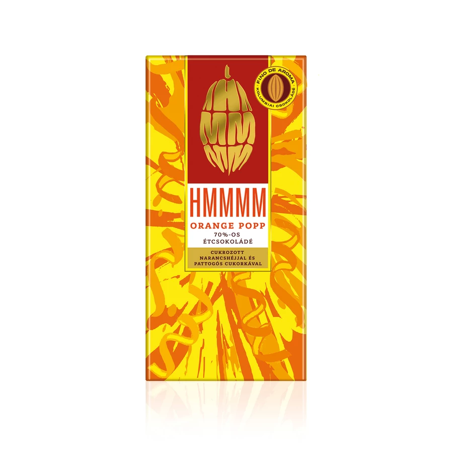 Kolumbiai étcsokoládé 90% (min. 72%-os kakaó szárazanyag) {{kakaómassza, cukor, kakaóvaj, emulgeálószer (napraforgólecitin); szárított kandírozott narancshéj 5% (narancshéj, cukor, glükóz-fruktóz szirup, savanyúságot szabályozó anyag (citromsav); neutrális robbanócukor 5% (cukor, laktóz, glükóz, gázképző anyag (szén-dioxid)} Nyomokban földimogyorót és egyéb dióféléket tartalmazhat. |